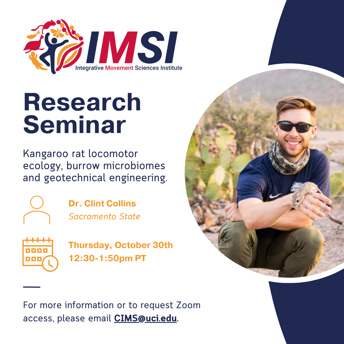 Title: Kangaroo rat locomotor ecology, burrow microbiomes and geotechnical engineering. Presenter: Dr. Clint Collins (Sacramento State)